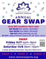 CB Snowsports Foundation Annual Gear Swap Get ready for winter and help local youth hit the slopes! Join us for the Annual CB Snowsports Foundation Gear Swap — your chance to buy and sell quality winter gear while supporting snowsports programs for Gunnison Valley kids. DROP-OFF LOCATIONS (11am–4pm) ?? Sat 10/25 – Rec Center, Gunnison ?? Sun 10/26 – Zuni West, CB South ?? Sat 11/1 – 4-Way Parking Lot, Crested Butte ?? Fri 11/7 – Lodge at Mountaineer Square, Mt. CB (9am–12pm) SWAP DATES Friday, Nov 7 | 4–8pm $25 donation for early bird adult entry (first dibs on the best gear!) Saturday, Nov 8 | 9am–12pm Free admission! Location: Lodge at Mountaineer Square Ballroom, Mt. Crested Butte Swap it. Shop it. Shred it. All proceeds benefit youth snowsports programs in the Gunnison Valley. Want to make an even bigger impact? Support our Gear Up for Greatness campaign through the Community Foundation of the Gunnison Valley’s Giving Connection — helping local kids access safe, well-fitting gear for a great start in snowsports. ?? Donate here: https://cfgv.fcsuite.com/erp/donate/create/fund... Learn more: www.cbsnowsports.org Click here for the event website |