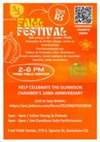 Fall Fest is a celebration of the Gunnison Country Chamber of Commerce’s 100th anniversary—and you’re invited! Join us Saturday, October 18 from 2–6 pm at the Fred Field Center for live music, food and drinks, games, vendors, face painting, photo ops, and more. Tickets are $10 and include two beverages (alcoholic or non-alcoholic). Kids 12 and under get in free. Food and other vendor items will be available for purchase. Get your tickets now and come celebrate with us! Jim Davidson will be donating his solo performance time as Gunnison Chamber of Commerce member for the Chamber's Fall Fest. Click here for the event website |