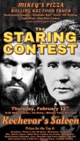 """"""""The Staring Contest"""""""" ...a tournament of skill... will be held at Kochevar's Saloon on Thursday, February 12 with registration beginning at 6:30 PM. Competitors 21-and-up will stare at each other in a one-on-one bracket-style elimination tournament until a champion emerges. Grudge matches will follow the official tournament. More information is available by calling 515-249-4075. Click here for the event website |