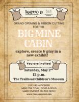 Join the Trailhead and the CB Heritage Museum to celebrate the new Big Mine cabin exhibit in the Trailhead Children's Museum! Bring your family to live (play) like a pioneer in a mining cabin. The Trailhead Children's Museum will be celebrating with a ribbon cutting at noon and s'more on the deck. Click here for the event website |