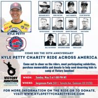 Get ready to rev up for the cause as the 30th Anniversary Kyle Petty Charity Ride Across America visits Gunnison, CO on Sunday, May 3! Come out to greet NASCAR’s Kyle Petty and other celebrity riders – including Richard Petty, Matt Kenseth, Mike Helton, Clint Bowyer, Ken Schrader, Kenny Wallace, David Ragan, Rutledge Wood, Rick Allen and Bill Davidson – along their nine day cross country charity motorcycle ride. This year, the Ride is traveling more than 3,400 miles from California to North Carolina. Considered one of the most successful and popular charity rides in the country, the Ride raises funds and awareness for Victory Junction – a camp dedicated to providing life-changing camping experiences for children with chronic medical illnesses. Victory Junction has served as the Ride’s primary beneficiary since its establishment by Petty and his family in 2004 in honor of his late son, Adam. Since the Ride’s inception in 1995, more than 9,575 riders have logged nearly 13.3 million cumulative motorcycle miles and raised more than $23 million for Victory Junction and other children’s charities. Fans are encouraged to come support the cause and greet our Riders. Be sure to get there early to cheer on the Riders as they arrive. Kyle will arrive with 150 motorcycles and it’s quite the spectacle to see! Spectators may also purchase memorabilia (T-Shirts = $20; Hats = $20) or contribute to the Ride’s “Small Change. Big Impact.” program, which accepts donations at each stop. CASH OR CHECK ONLY! Fans are welcome to meet the celebrities for photos and autographs. Please limit autograph items to 2 items per person. ** NOTE: Some celebrities are only participating on select dates of the Ride and may not be available at each fan event. ** For more information, please visit www.kylepettycharityride.com. Click here for the event website |