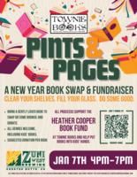 This is a community book swap fundraiser at Zuni West Brewing. Guests can bring a book or browse, and donations support the Heather Cooper Book Fund at Townie Books. |