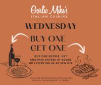 5:00pm-8:30pm BOGO Wednesday Garlic Mike’s
