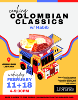 Join us from 4-5:30pm at the Gunnison Library on Wednesday, February 11 and 18 for a Cooking Colombian Classics class w/ Habib. Learn how to prepare several classic Colombian dishes and discover Colombia’s rich culture. This event is free and open to the public. Click here for the event website |