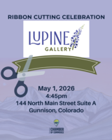 Join us for a ribbon cutting celebration at Lupine Gallery at 144 N Main Street Gunnison on May 1st at 4:45pm. Reception to follow. |