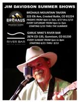 Jim Davidson performs every Friday at Brühaus Mountain Tavern in Crested Butte, CO from 24 April 2026 to 15 May 2026. The following week on 23 May 2026, Jim switches to every Saturday during the summer season. So, come on by and enjoy the great service, food and libations at Brühaus Mountain Tavern while Jim lays down some old-school traditional fingerstyle guitar and vocal renditions of folk, country, bluegrass and Americana favorites. Click here for the event website |