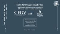 CFGV is partnering with Braver Angels, a national non-partisan organization whose mission is to reduce political polarization in the US, to bring a Skills for Disagreeing Better workshop to the Valley. If you've found yourself struggling to understand where folks with different political beliefs are coming from, or if you've experienced the negative impact political polarization can have on your relationships with others, this is the place for you! When we try to communicate across political divides, we often lack the skills for listening carefully, looking for common ground, and sharing our perspectives in ways that connect rather than create more misunderstanding. Join CFGV in learning to disagree better in polarized times, and seeing where we differ and where we share common ground. We will be providing dinner, so please register at www.eventbrite.com/e/skills-for-disagreeing-better-registration-1936892510639?aff=oddtdtcreator&discount=BRAVER if you plan on attending. We will also be holding the same workshop in Crested Butte on Tuesday, November 18th if you’d like to attend but aren’t available for this one. Click here for the event website |