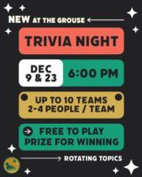 Join us on December 23rd for Holiday themed trivia at the Sage Grouse Lounge. Up to 10 teams, free to play, prizes for the winning team! |