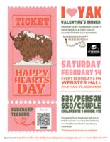 I ?? Yak: Valentine’s Dinner Saturday, February 14 | 6:00 PM Webster Hall, 214 S. Main St., Gunnison Celebrate Valentine’s Day with a special community dinner featuring yak, presented by Gunnison County Farm Bureau and Chef Colby Clement of CC’s Burgers. Proceeds from the event benefit the Gunnison Country Food Pantry and Ronald McDonald House Charities. Tickets: • $30 per person • $50 per couple • Children 12 & under: $15 Limited tickets available, see flyer for Venmo details to purchase tickets. For questions, contact Shane at 720-560-6015 or shanediligenthands@gmail.com, or Janet at 720-341-1177. |