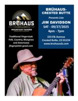 Jim Davidson returns to the Bruhaus patio in Crested Butte, CO from 4pm to 7pm. Click here for the event website |