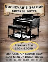 Julian Young and The She Shaws will change your expectation of the power of a quartet. Julian will be raging with is voice and bumping bass on his Hammond Organ. Accompanied by local heavy hitters Erin Geye, Conner Shaw, and Dana Shaw, it is sure to be a rowdy time! Anticipate Rock, Soul, and Originals elevated to another dimension. |