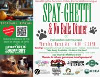 One of our biggest hits, the Annual Spayghetti and No Balls Dinner, is just around the corner! Join us Thursday, March 5th between 4:30PM and 7:30PM at Palisades Restaurant at 802 N. Main Street in Gunnison. Tickets can be purchased in advance through Zeffy or at the day with cash, check, or Zeffy (credit card). Tickets are $20/person and $15 for children ages 10 and under. Meals include salad, garlic bread, spaghetti with meat or vegetarian sauce, and soda. Adult beverages will be available for purchase and there will be a by donation dessert table. Live music will be provided by Matthew Grant of Blue Mesa Music. All proceeds from this incredibly fun event go to GVAWL to help us continue with our work in providing care and safety to homeless animals in the Gunnison Valley. Come enjoy time with family and friends, have a delicious meal, listen to some wonderful music, and maybe make some new friends, too! Visit us anytime on Thursday, March 5th between 4:30 and 7:30. A huge thank you to our wonderful sponsors for their support: Palisades Restaurant, Blue Mesa Music, Colorado Legacy Properties, Dog Cabin Resort, GCEA Care for Community Committee, Gunnison Country Times, Marvel Accounts, Kindred Spirits Wanderlust, and Western Lumber. These incredible local businesses made this event possible, and we are so grateful for each of them. Please show your support to these incredible local businesses. Click here for the event website |
