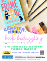 Join us at the Crested Butte Library at 6 pm on Tuesday, March 10 for Crafternoon. For March we’ll be making bedazzled books! Bring your own book to bedazzle or choose from a selection we’ll have. NEW: Please register for the event by clicking here: https://forms.gle/hoMRewtHbf4TiisaA Crafternoons are monthly maker-oriented sessions with different projects every month for teens and adults. All supplies and basic instructions are provided. Click here for the event website |
